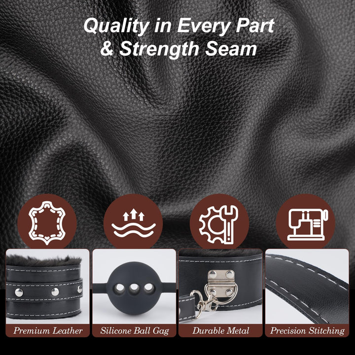 Enthält Silikon-Knebel, Manschetten aus Konschtlieder a verstäerkt Nähten fir Sécherheet, Komfort a laangfristeg Notzung.