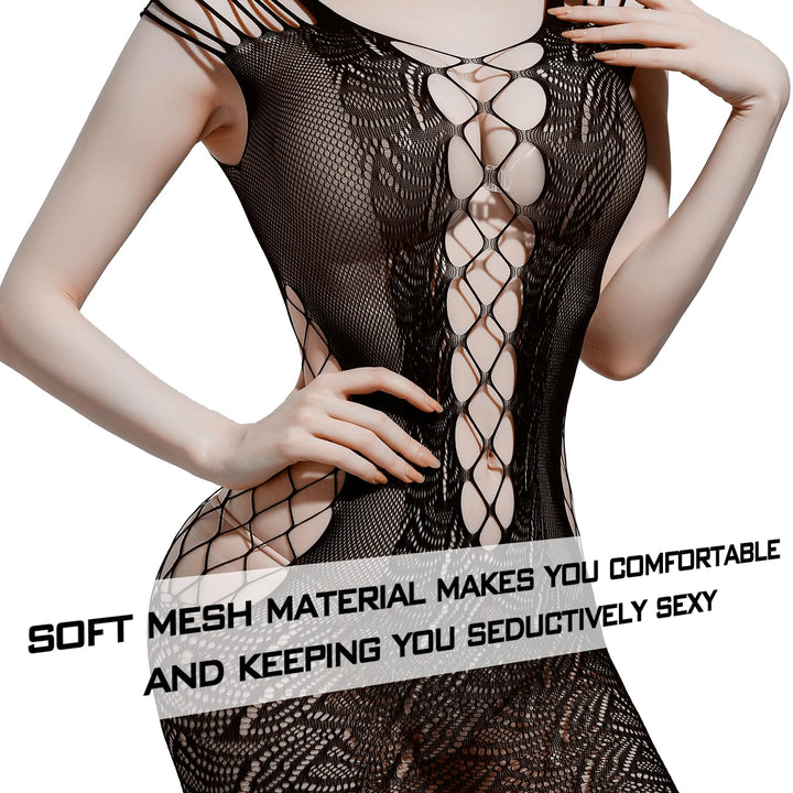 💎SEXY FËSCHNETZ-ËNNERWÄSCH-BODYSET: D'Ënnerwësch ass aus 92% Nylon an 8% Spandex gemaach, wat glat, mëll a bequem ze droen ass, ouni Hautbeschwerden ze verursaachen. Dat mëllt Mesh-Material hält Iech verführeresch sexy an et gëtt keng Nähten, sou datt kee Fuedem ofgeet.